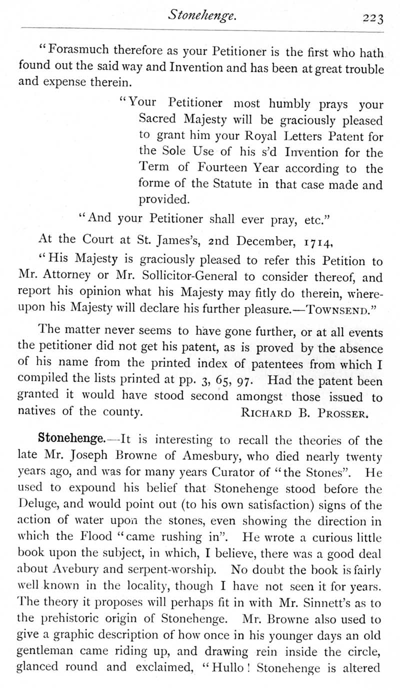 Page 32 Edward Pullen of Cricklade, inventor of method for increasing the capacity of water-driven mills, 1714. Stonehenge theories of Joseph Browne of Amesbury.