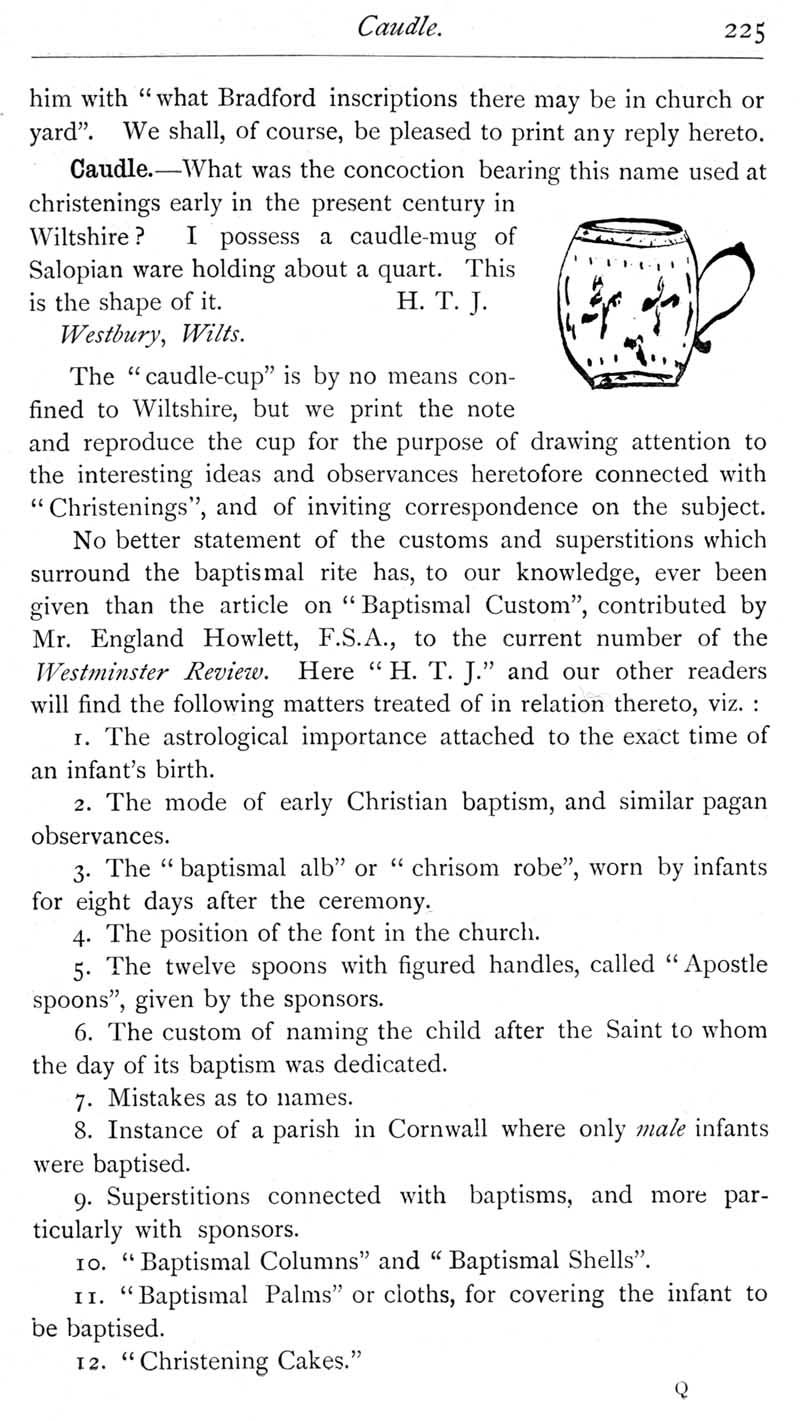 Page 35 Query about Bradford family inscriptions at Broad Hinton. The caudle-cup and christening customs.