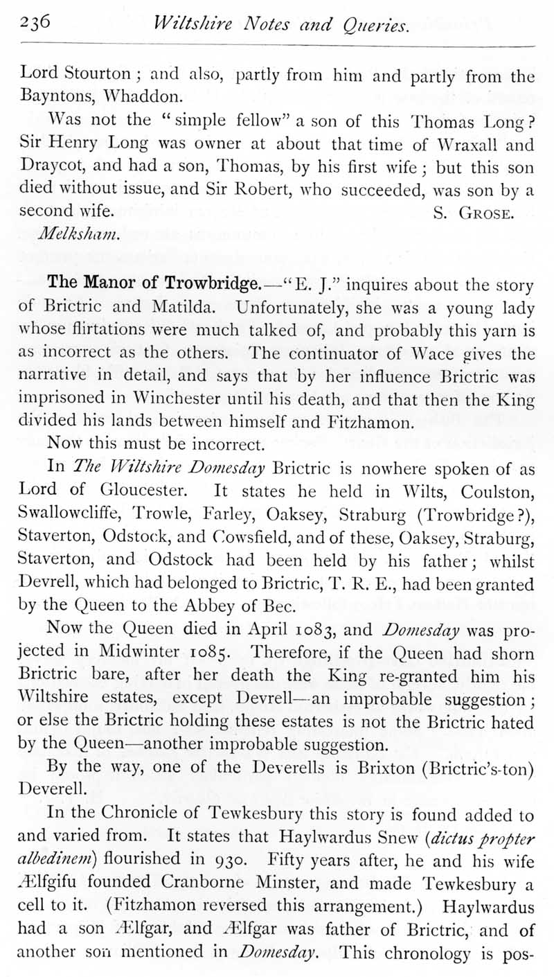 Page 47 Long family and bribery at elections. The manor of Trowbridge.
