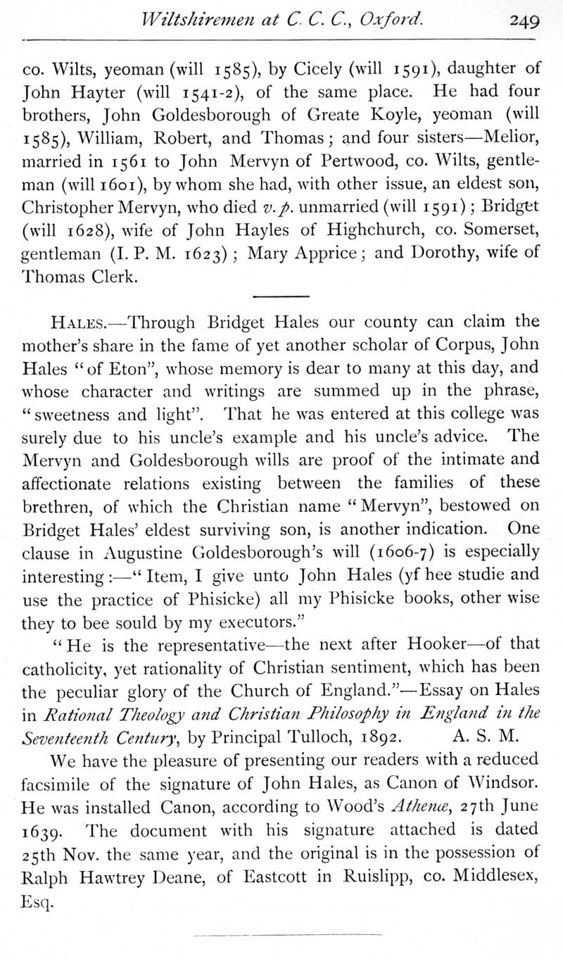 Page 11 Wiltshire fellows of Corpus Christi College, Oxford: Augustine Goldesborough and John Hales.