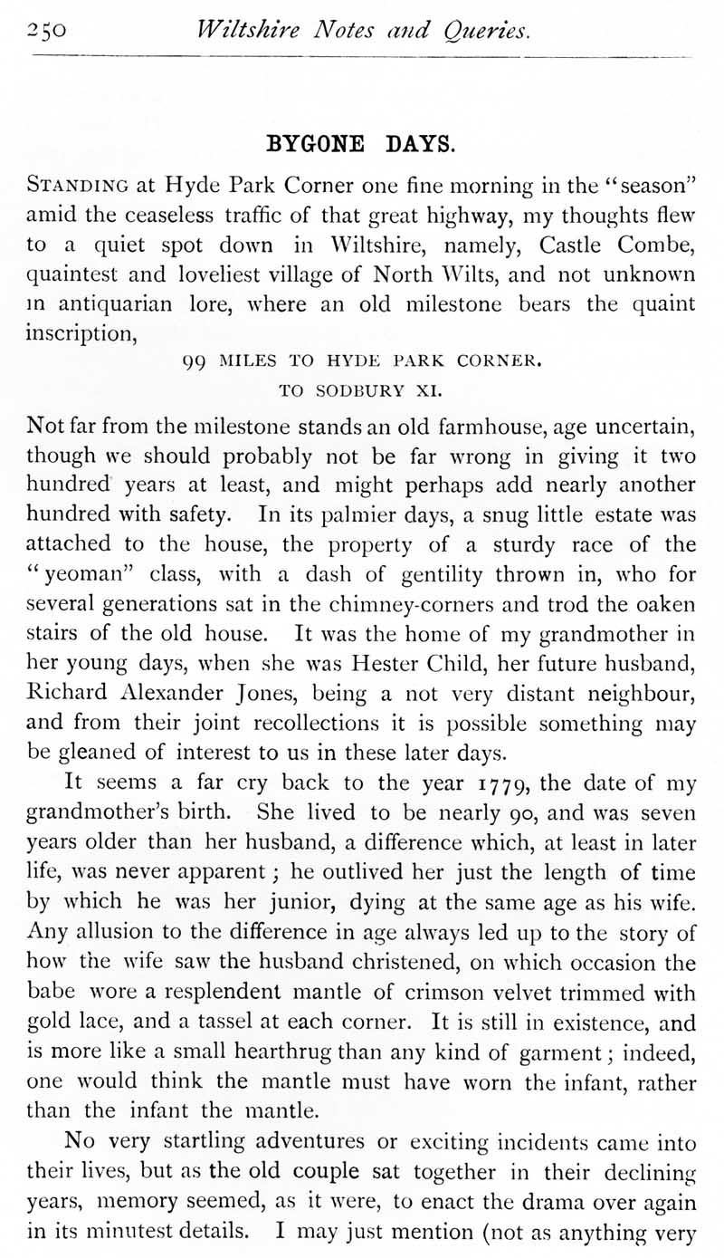 Page 12 Memories of 'bygone days', in Castle Combe, relating to the author's grandparents, Richard Alexander & Hester (nee Child) Jones,late 18th century and early 19th century.