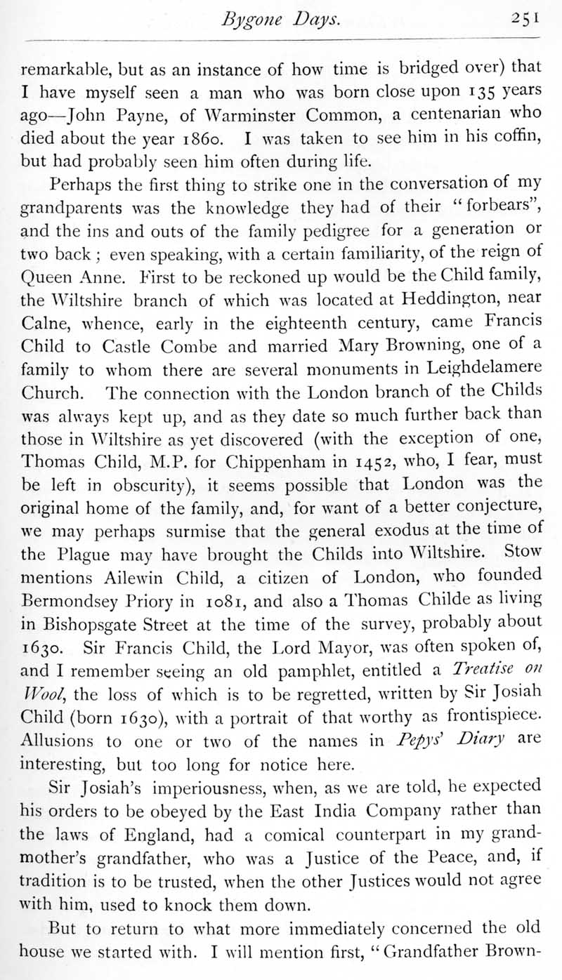 Page 13 Memories of 'bygone days', in Castle Combe, relating to the author's grandparents, Richard Alexander & Hester (nee Child) Jones,late 18th century and early 19th century.