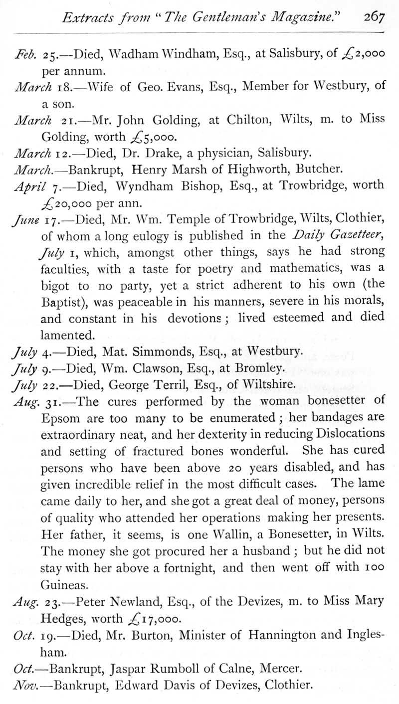 Page 29 Wiltshire extracts from The Gentleman's Magazine for 1736.