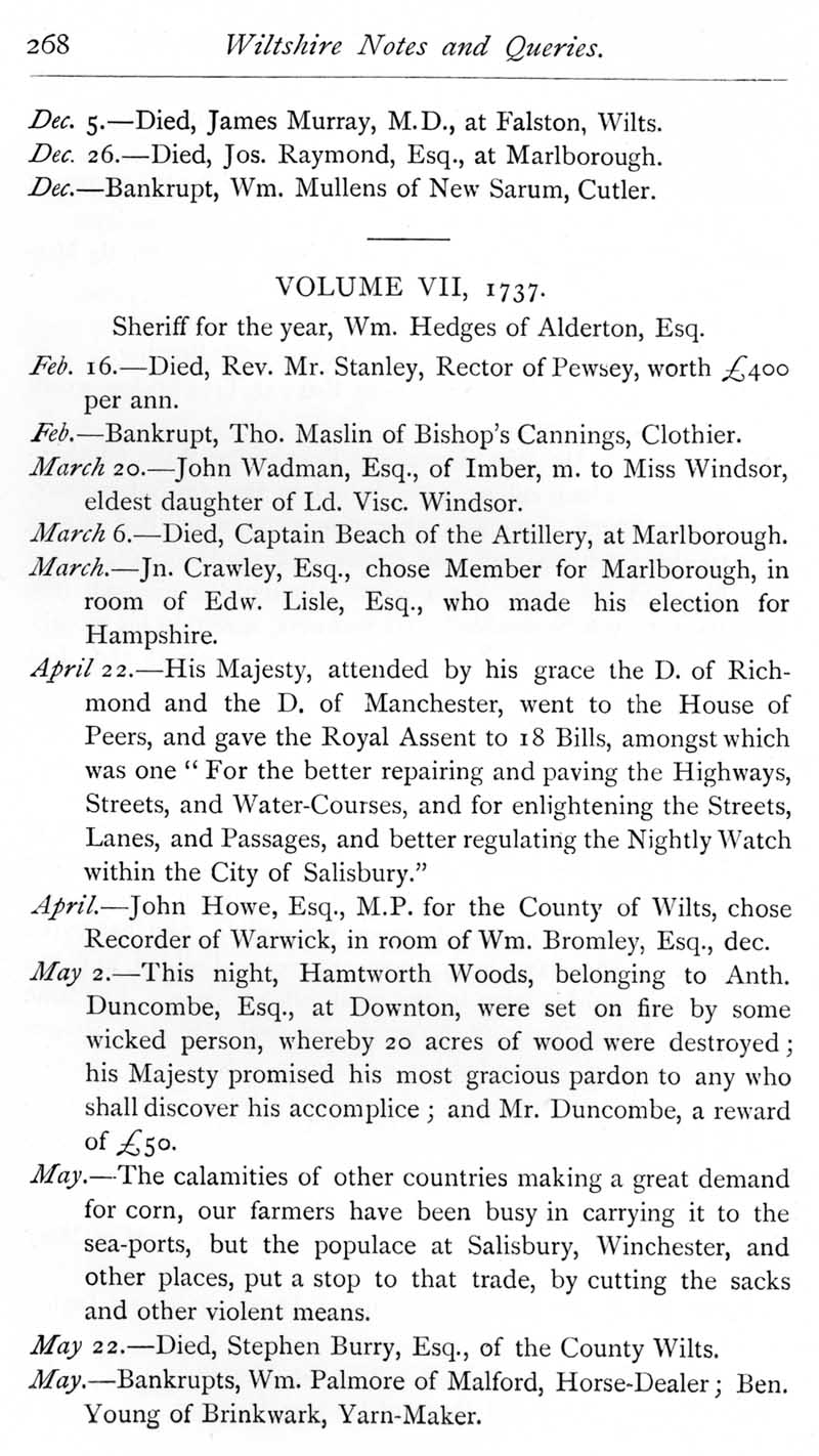 Page 30 Wiltshire extracts from The Gentleman's Magazine for 1736 and 1737.