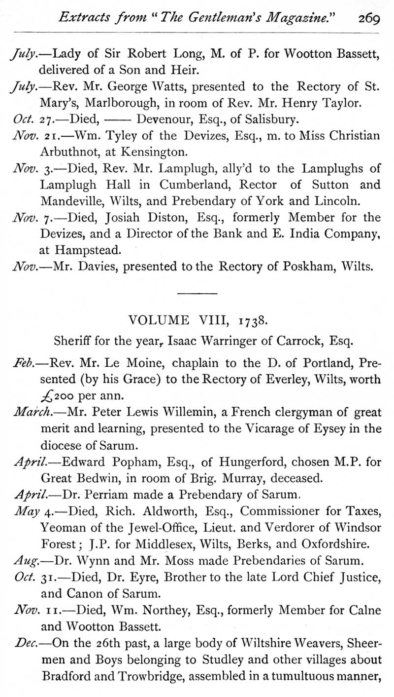 Page 31 Wiltshire extracts from The Gentleman's Magazine for 1737 and 1738.