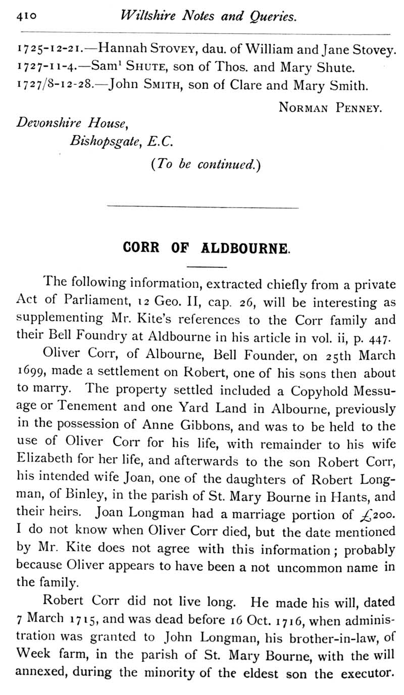 Chapter 10 Isaac Walton; Records of Wiltshire Parishes; Feet of Fines for Wiltshire; Quakerism in Wiltshire; Corr of Aldbourne; De Chyrebury of Seend; Houlton-Selfe; The Form 'Sarum'; John Noyes of Calne; Queries; Replies; Notes on Books