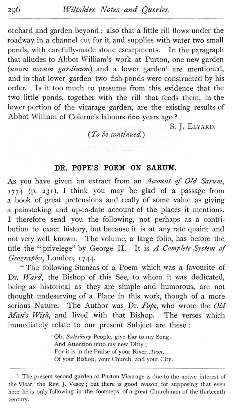 Page 7 Annals of Purton. Dr Pope's poem on Sarum.