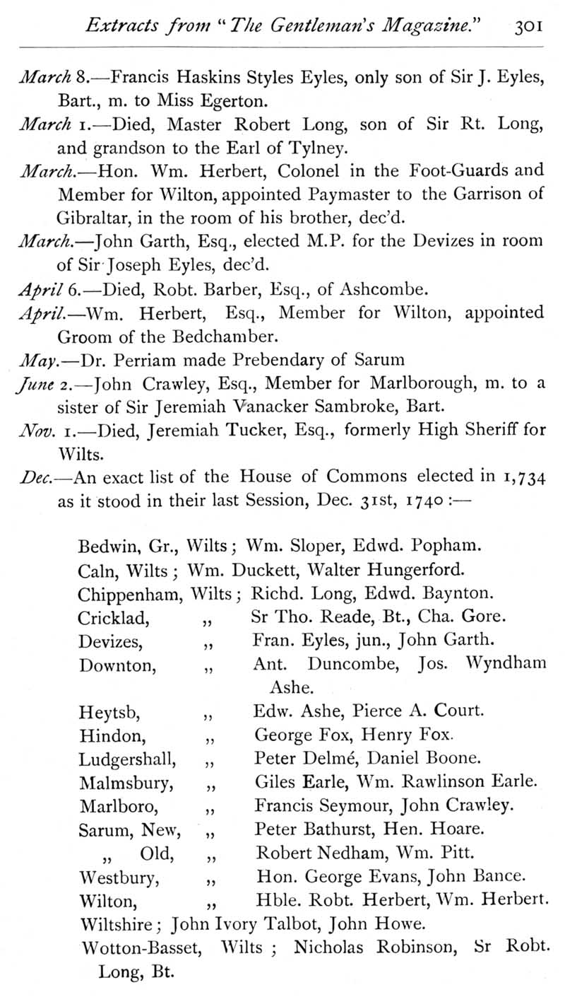 Page 12 Wiltshire extracts from The Gentleman's Magazine for 1740.