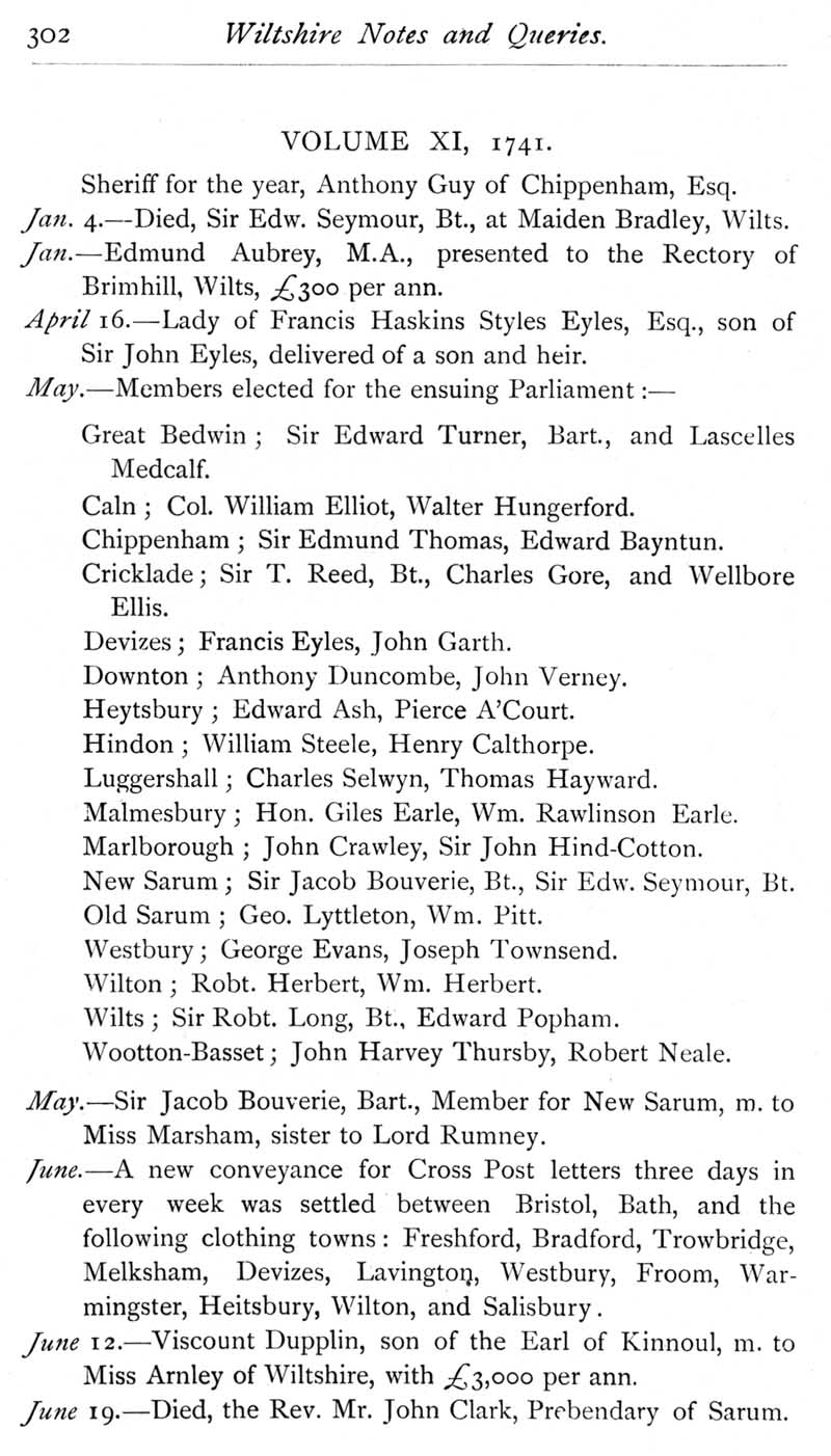 Page 13 Wiltshire extracts from The Gentleman's Magazine for 1741.