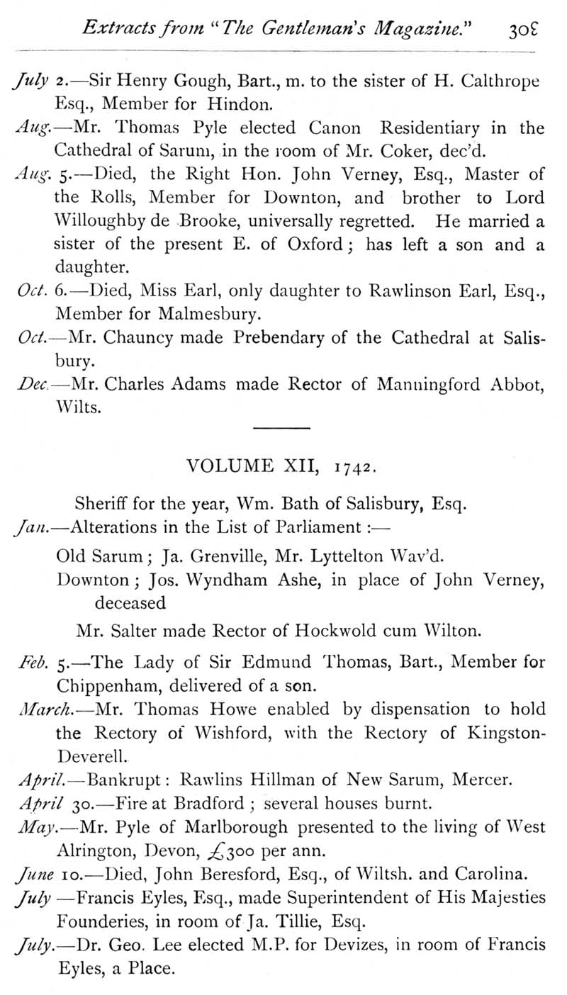 Page 14 Wiltshire extracts from The Gentleman's Magazine for 1741 and 1742.