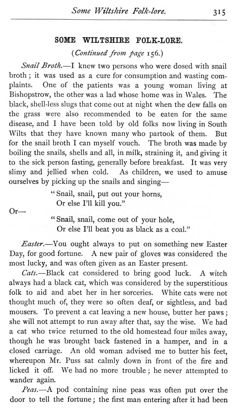 Page 26 Wiltshire folklore, including snail broth as a cure.
