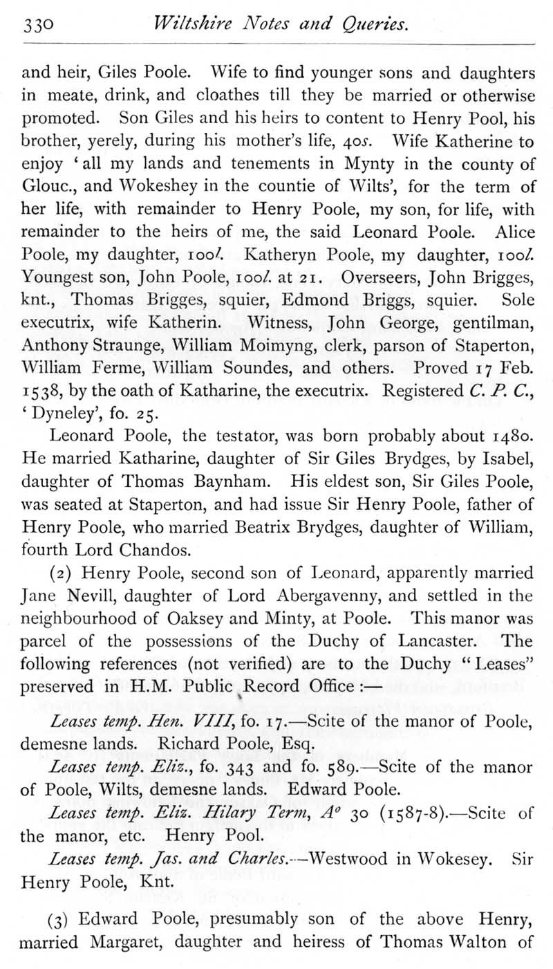 Page 41 Wiltshire members of the Long Parliament: Poole family.