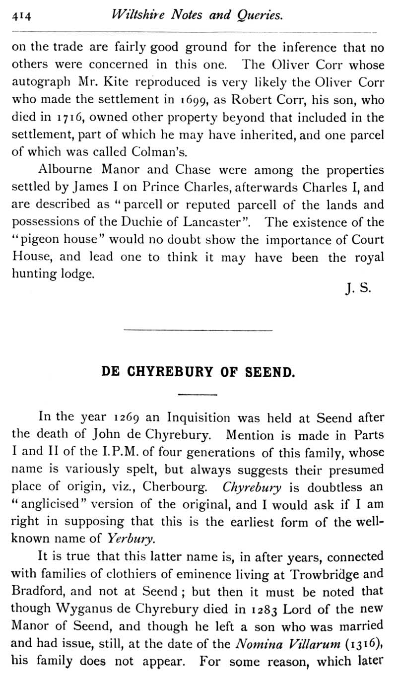 Page 30 De Chyrebury of Seend