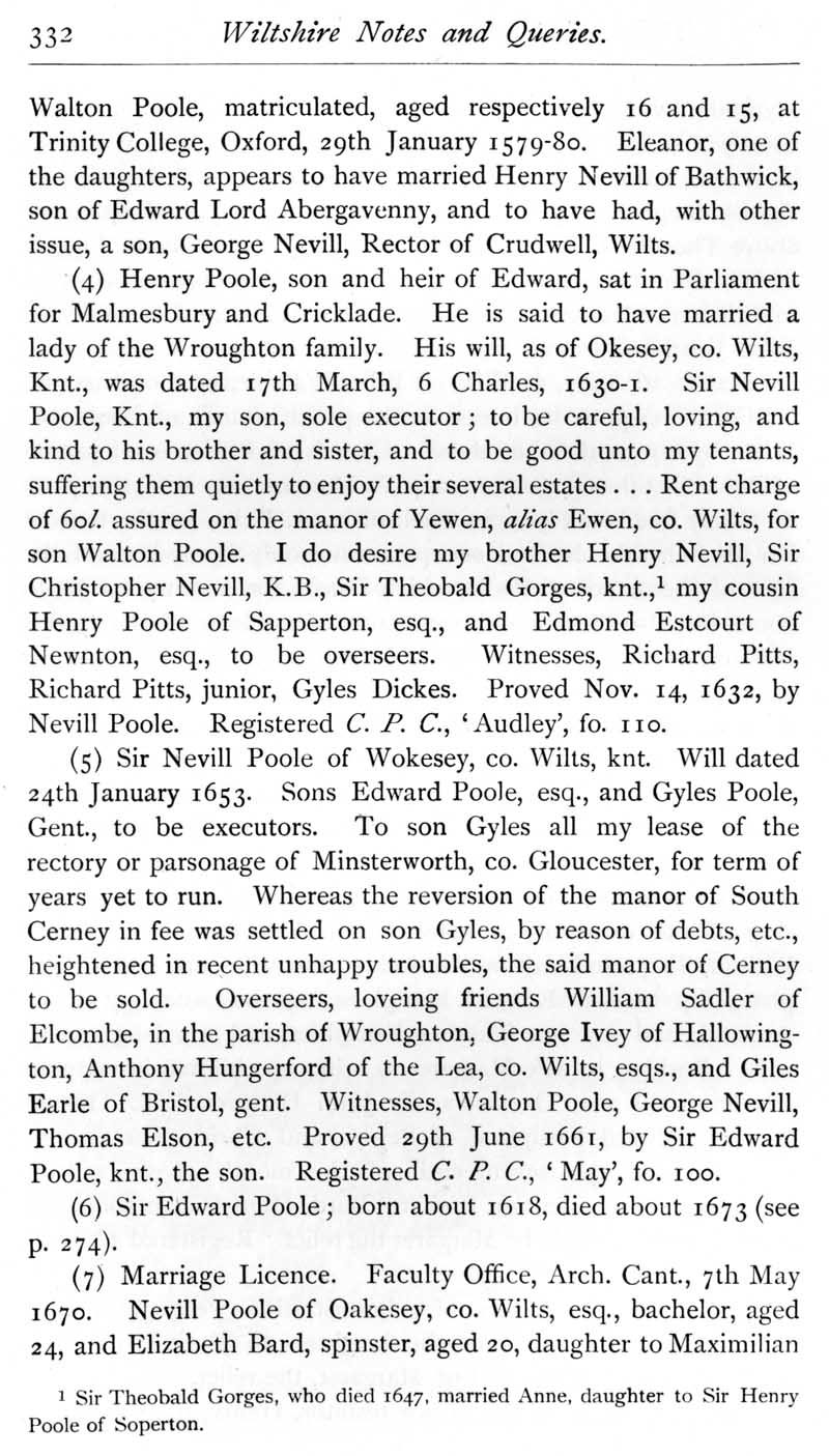 Page 43 Wiltshire members of the Long Parliament: Poole family.