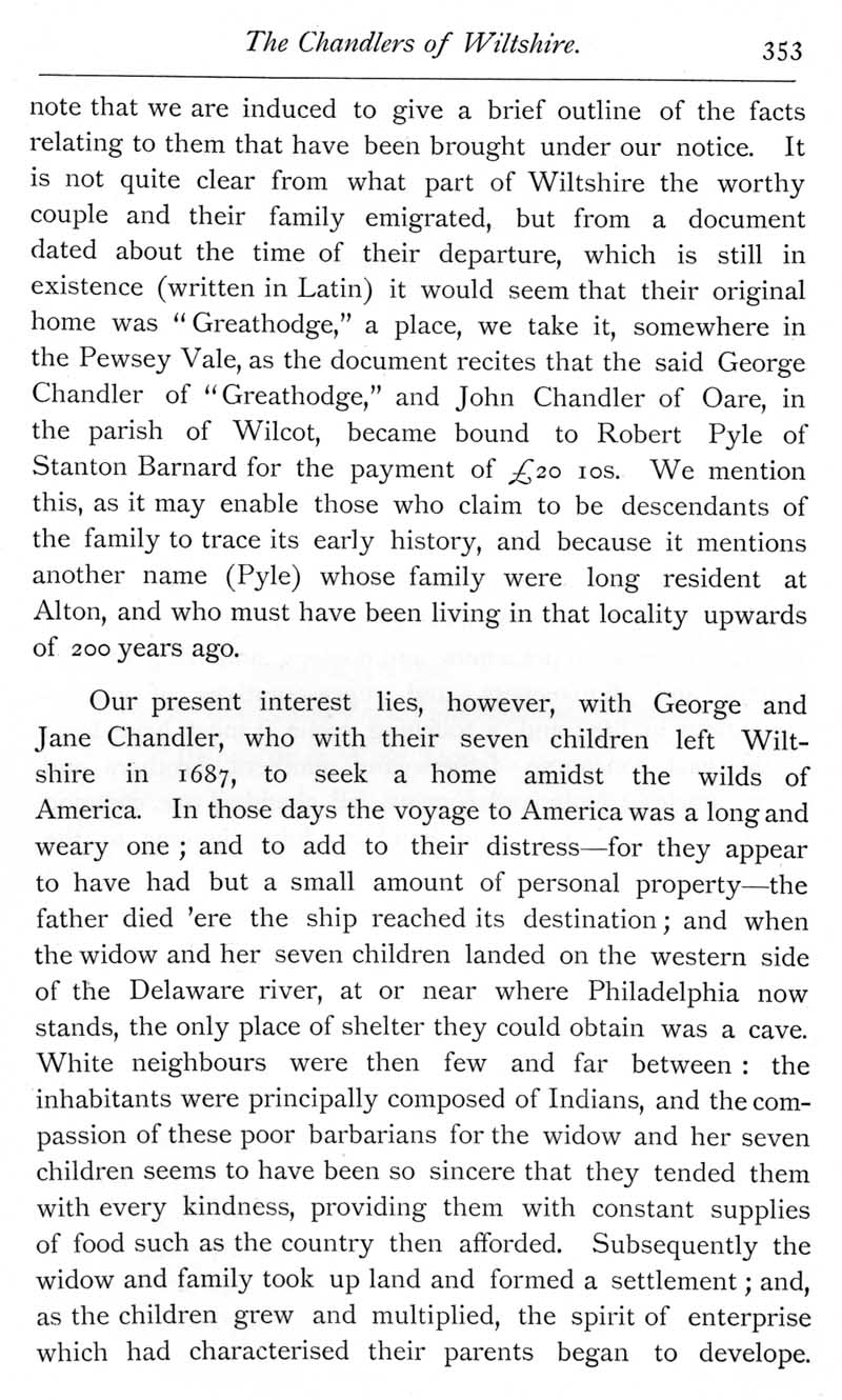 Page 16 George and Jane Chandler, emigrants from Wiltshire to America in 1687.
