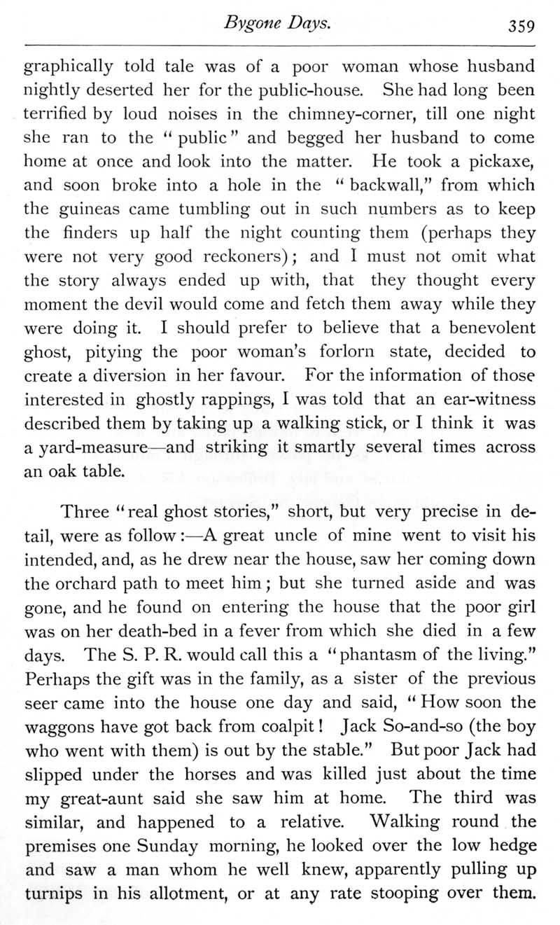 Page 22 Memories of 'bygone days', in Castle Combe, relating to the author's grandparents, Richard Alexander and Hester (nee Child) Jones, late 18th century and early 19th century, including mention of ghosts.