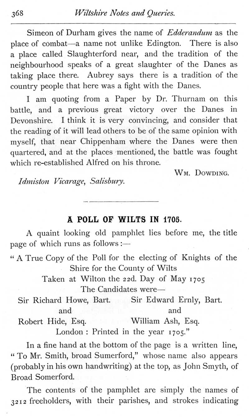 Page 31 The Battle of Ethandune. A Wiltshire poll-book of 1705.