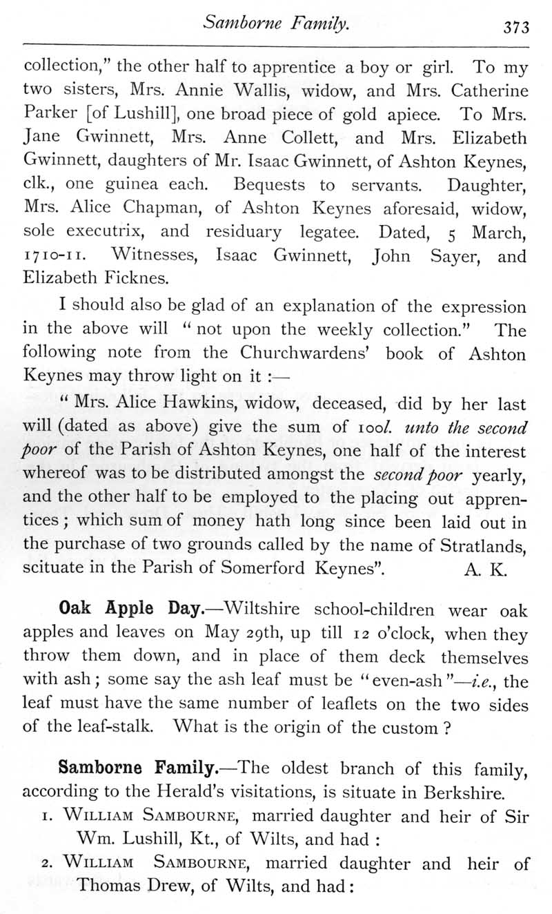 Page 36 Chapman family. Oak Apple Day custom. Samborne family.