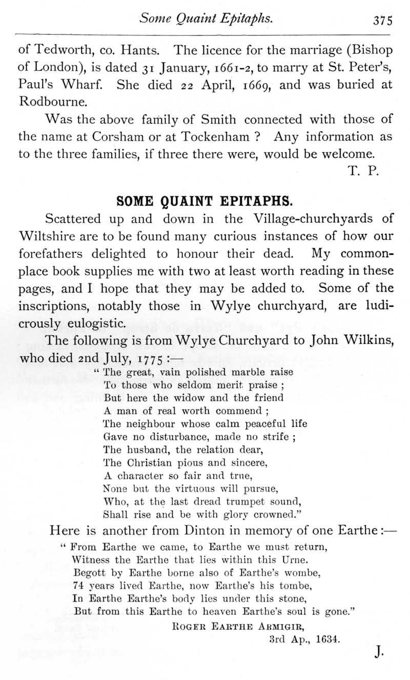 Page 38 Smith family. Quaint epitaphs at Wylye and Dinton.