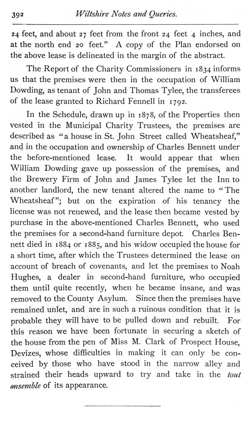 Page 7 The old house in Wine Street Alley, Devizes, called the Wheatsheaf in 1878.