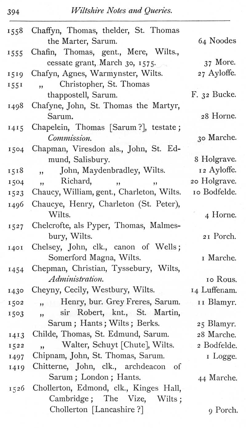 Page 9 Wiltshire wills proved in the Prerogative Court of Canterbury, 1383-1558 - Chaffyn to Chollerton.