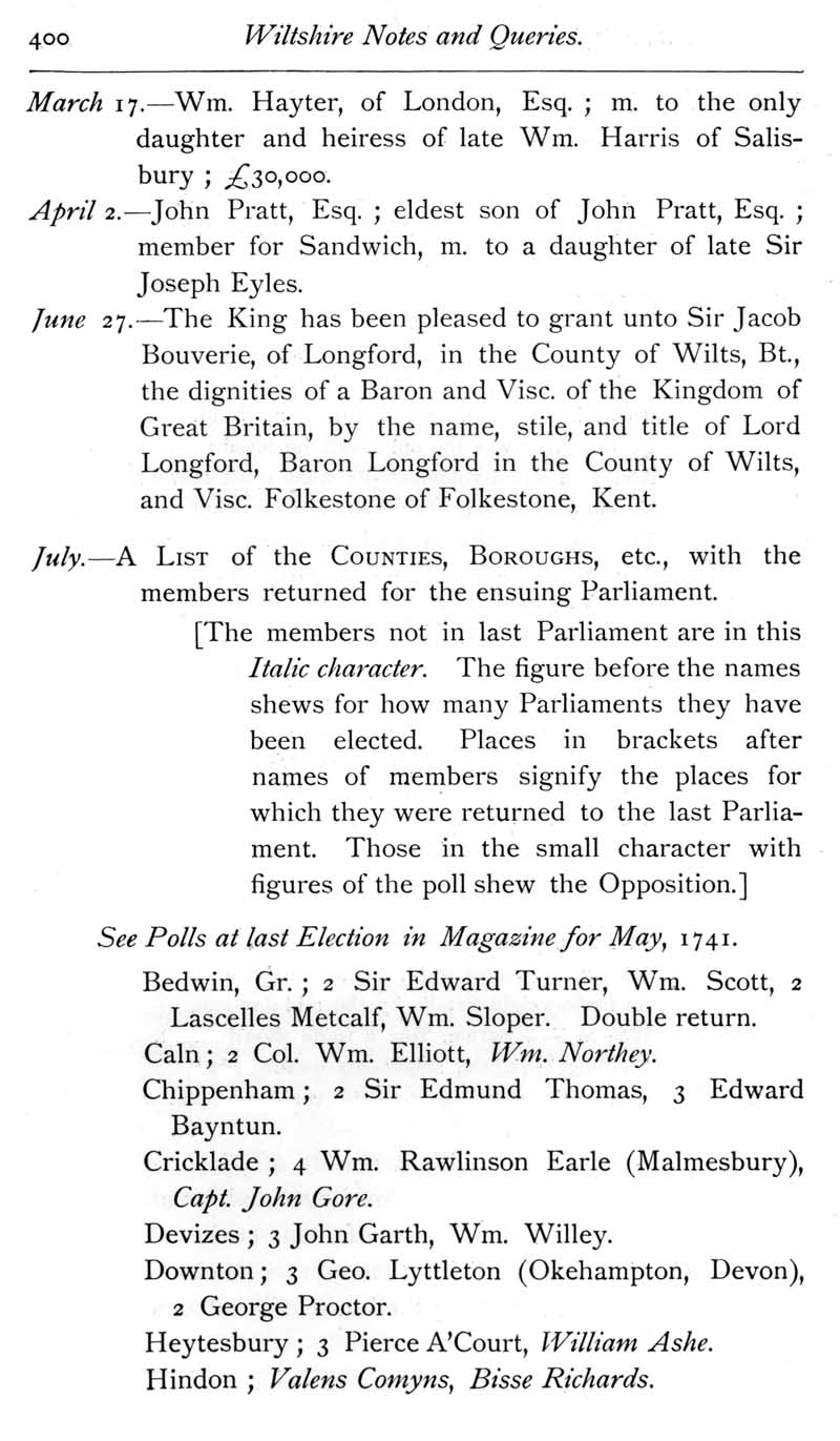 Page 15 Wiltshire extracts from The Gentleman's Magazine for 1747.