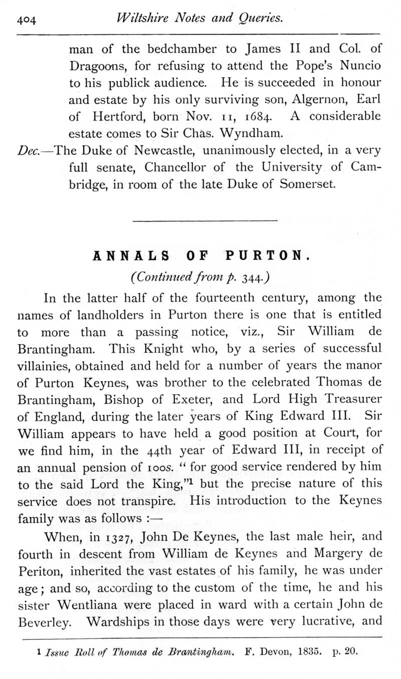 Page 19 Wiltshire extracts from The Gentleman's Magazine for 1748. Annals of Purton.