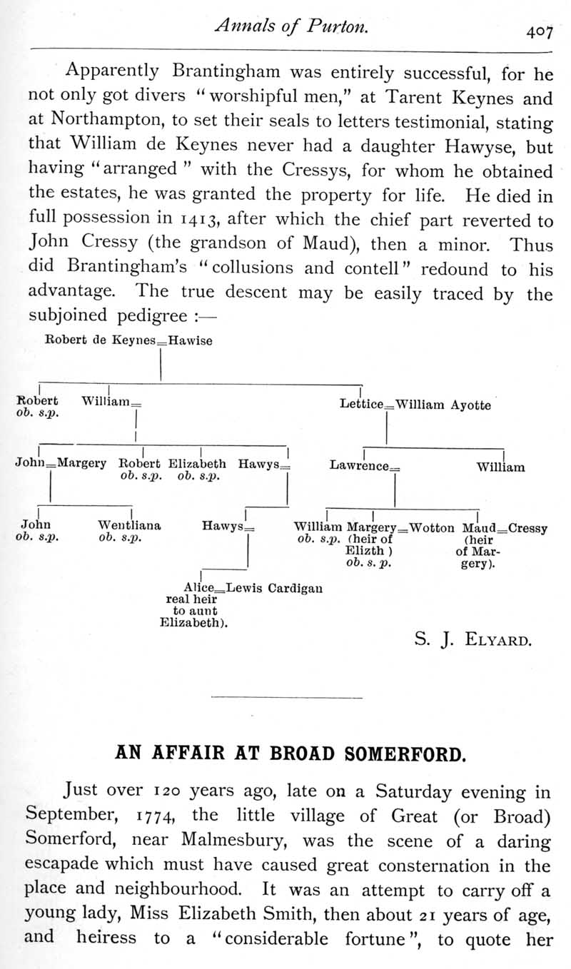 Page 22 Annals of Purton. Attempted kidnap of Elizabeth Smith, a wealthy heiress, at Great Somerford in 1774.