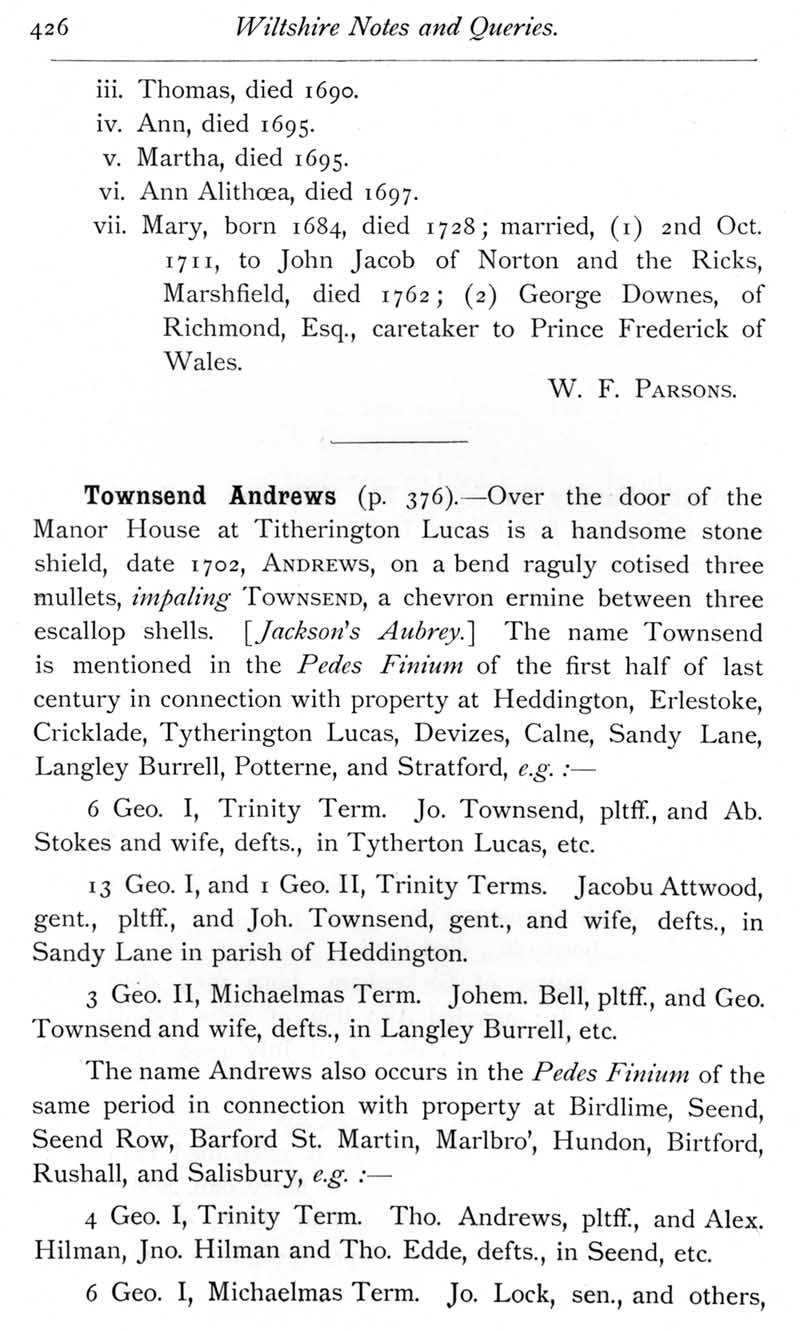 Page 41 Smith family of Tockenham. Townsend Andrews.