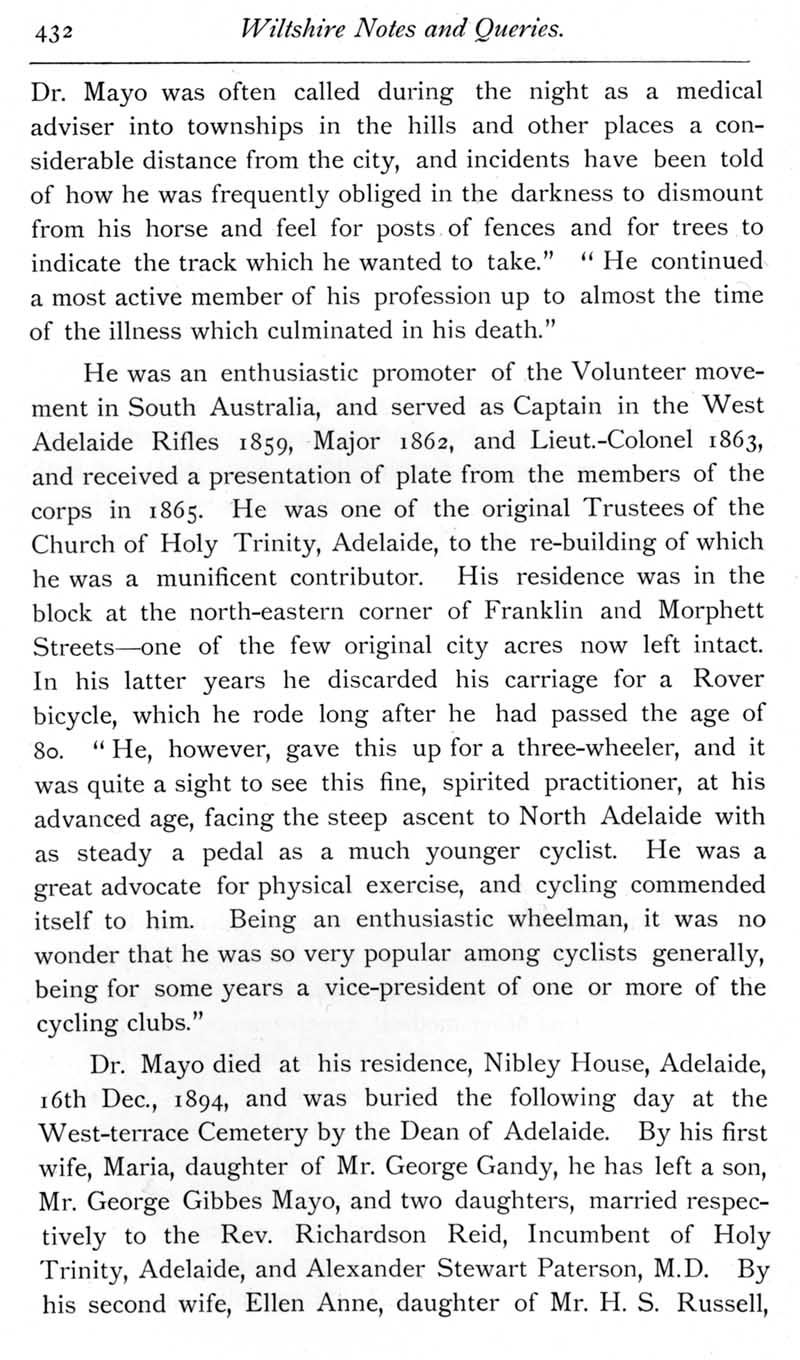 Page 47 Obituary notice of George Mayo, F.R.C.S., of Adelaide, a pioneer settler, born at Seend.