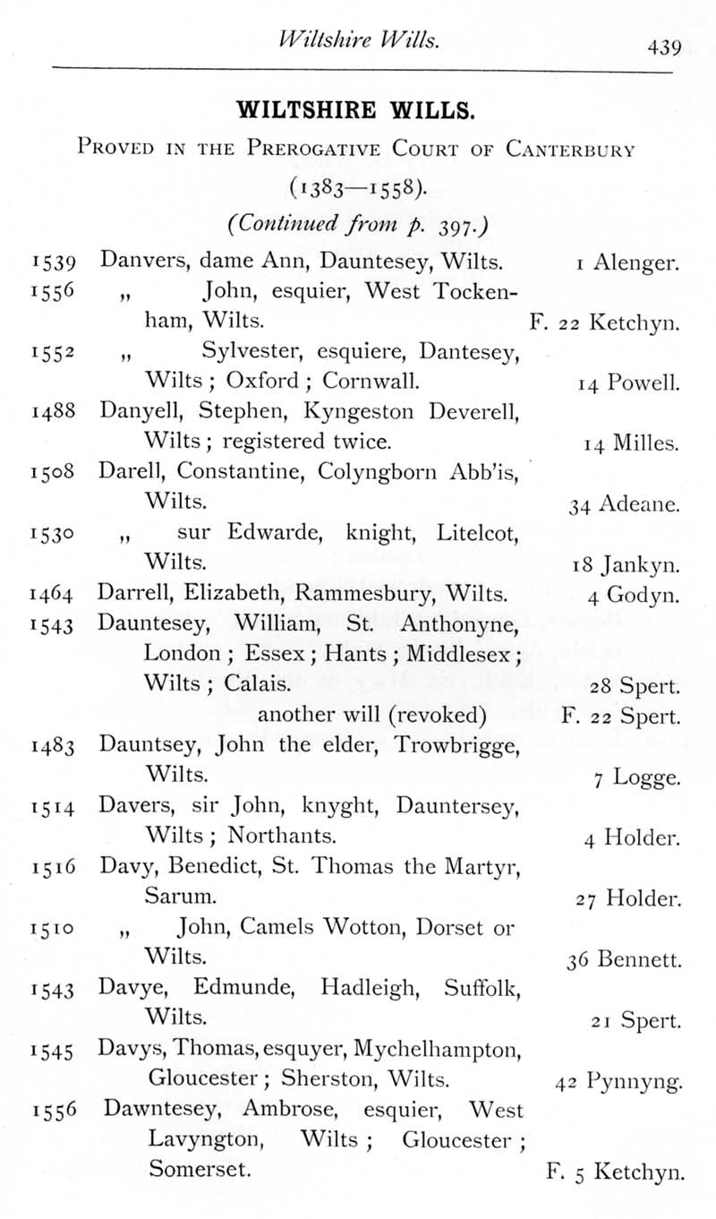 Page 6 Wiltshire wills proved in the Prerogative Court of Canterbury, 1383-1558 - Danvers to Dawntesey.