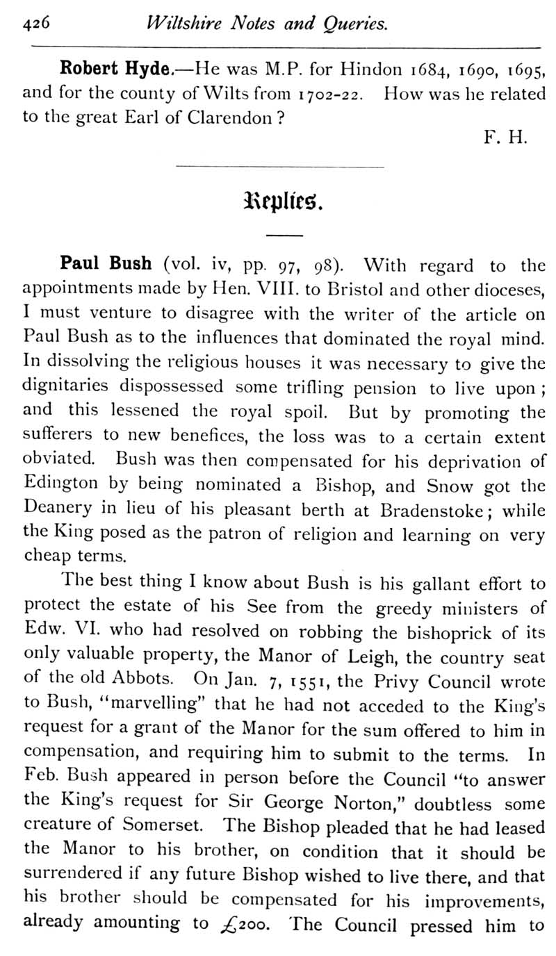 Chapter 10 Isaac Walton; Records of Wiltshire Parishes; Feet of Fines for Wiltshire; Quakerism in Wiltshire; Corr of Aldbourne; De Chyrebury of Seend; Houlton-Selfe; The Form 'Sarum'; John Noyes of Calne; Queries; Replies; Notes on Books