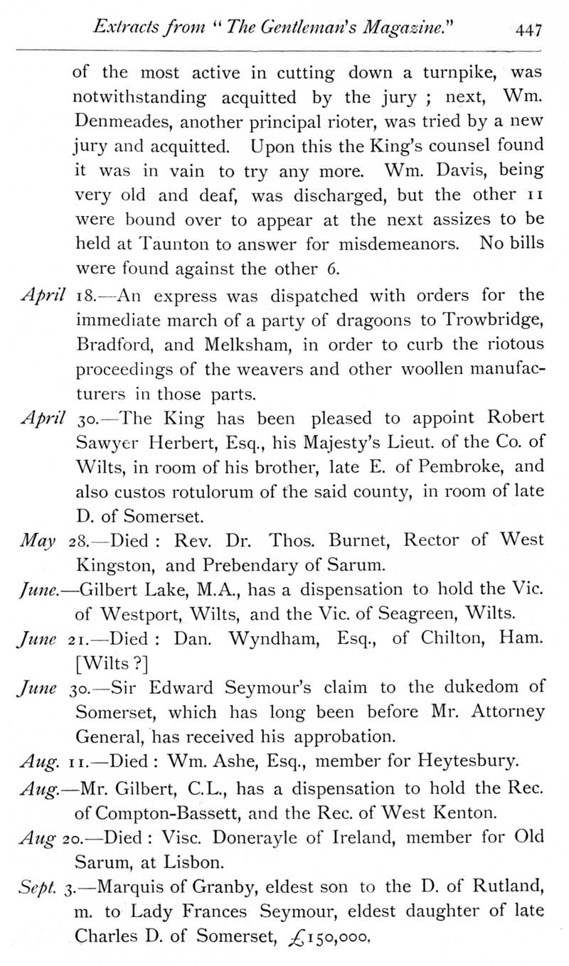 Page 14 Wiltshire extracts from The Gentleman's Magazine for 1750.