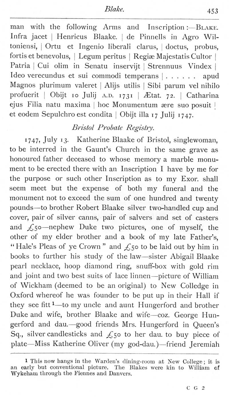Page 20 Notes on the Blake family with Seend connections.