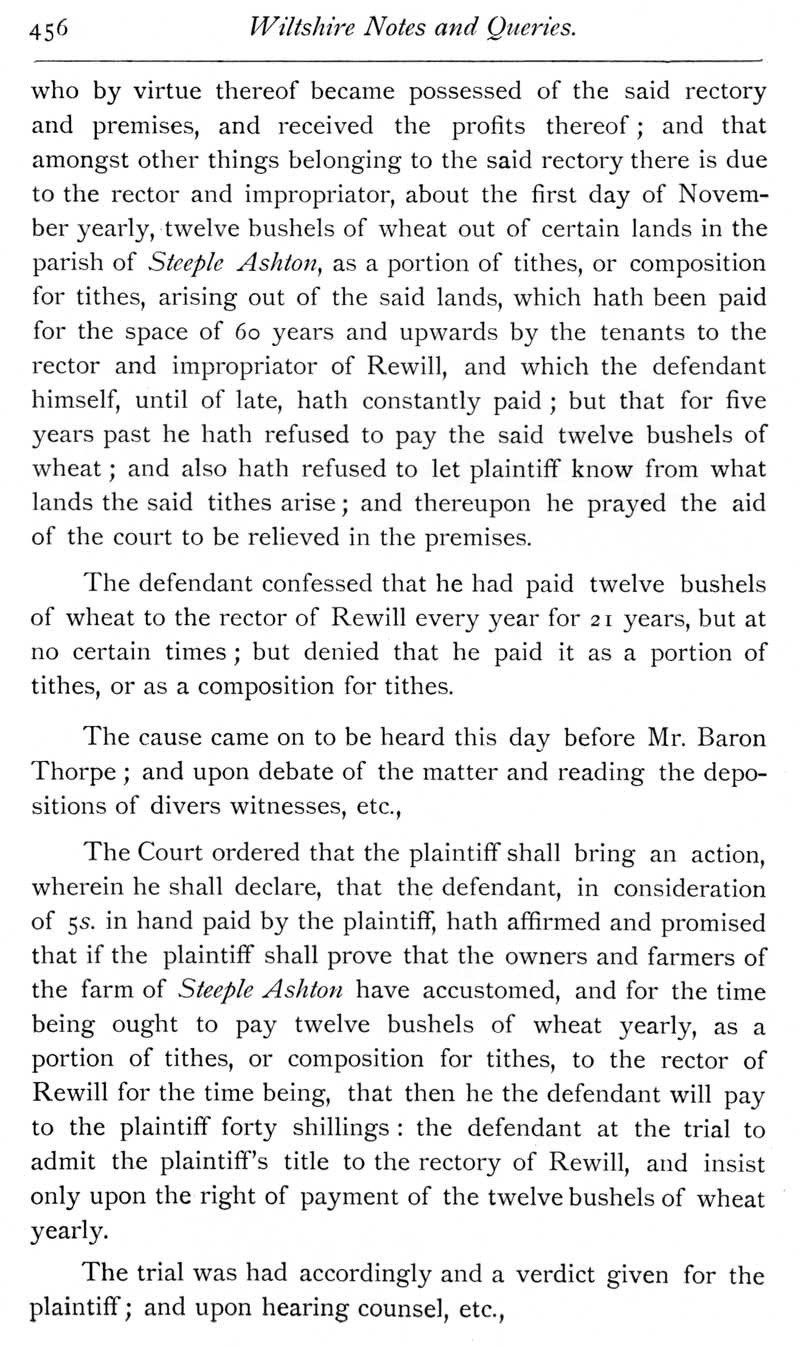 Page 23 Wiltshire tithe cases, including reference to Keevil and Steeple Ashton.