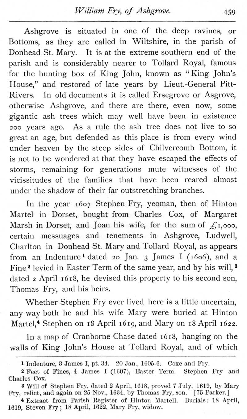 Page 26 William Fry of Ashgrove in Donhead St Mary, born 1622.