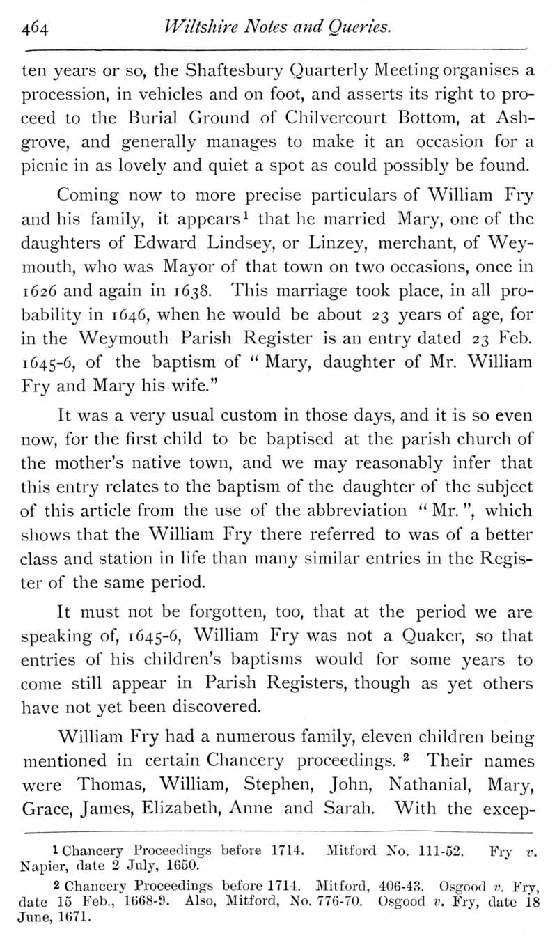 Page 31 William Fry of Ashgrove in Donhead St Mary, born 1622.