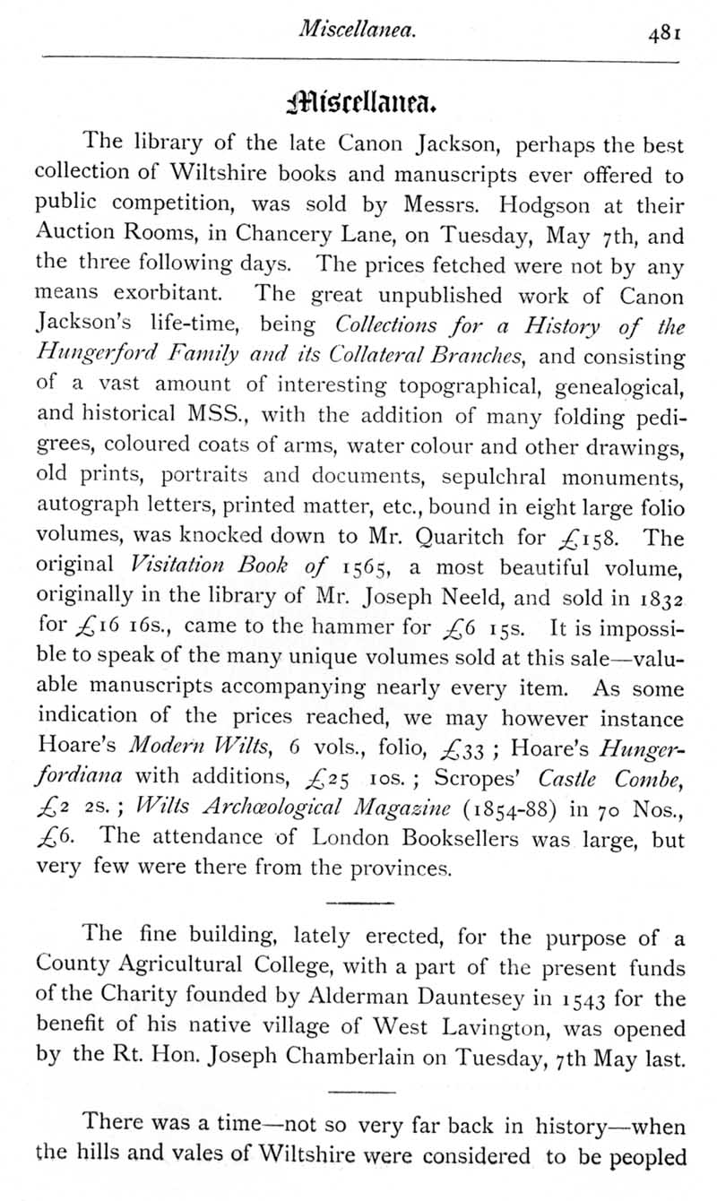 Page 48 Sale of Canon Jackson's library. Opening of County Agricultural College. Local ghost stories.