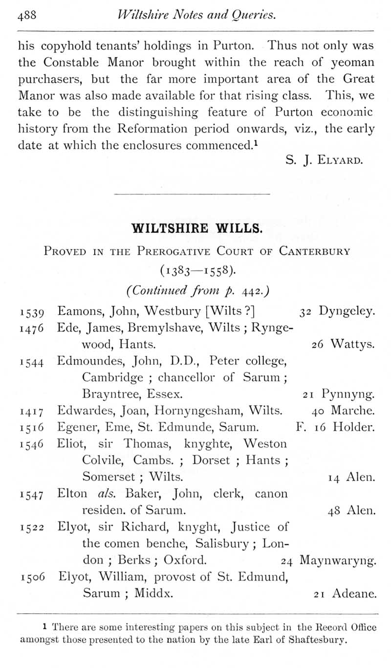 Page 8 Annals of Purton. Wiltshire wills proved in the Prerogative Court of Canterbury, 1383-1558 - Eamons to Elyot.