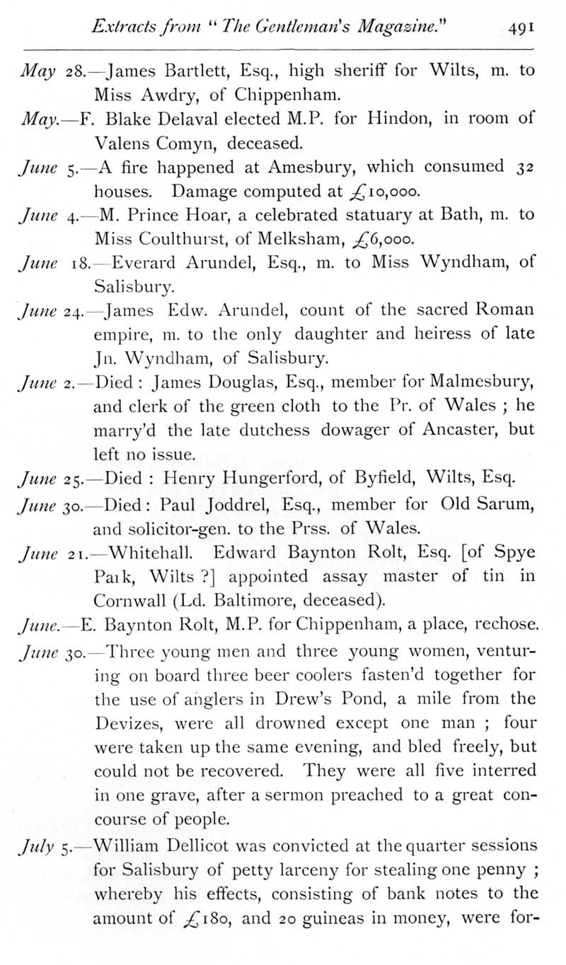 Page 11 Wiltshire extracts from The Gentleman's Magazine for 1751.