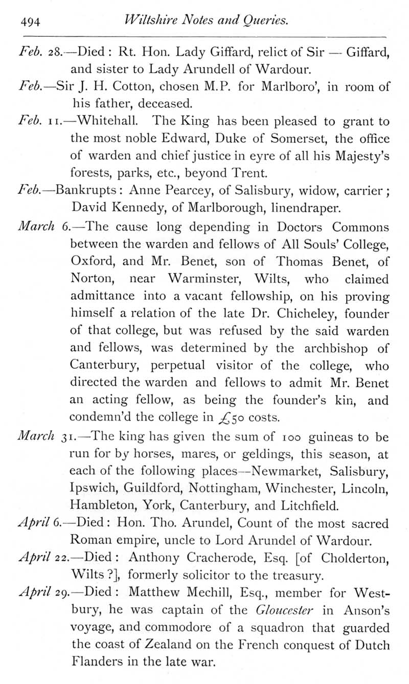 Page 14 Wiltshire extracts from The Gentleman's Magazine for 1752.