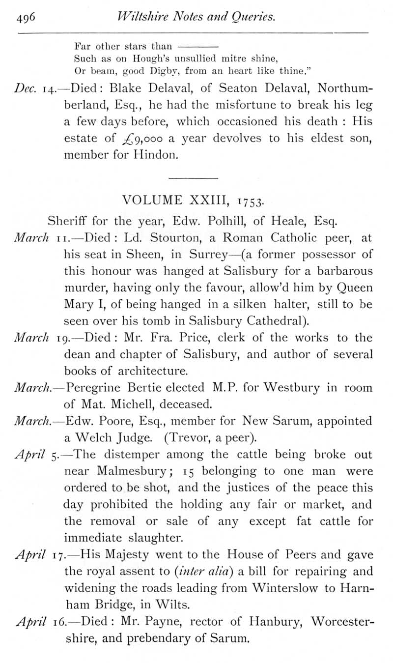 Page 16 Wiltshire extracts from The Gentleman's Magazine for 1752 and 1753.