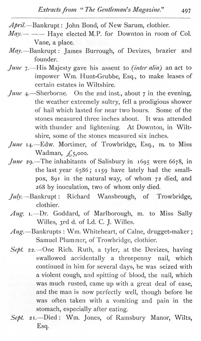 Page 17 Wiltshire extracts from The Gentleman's Magazine for 1753.