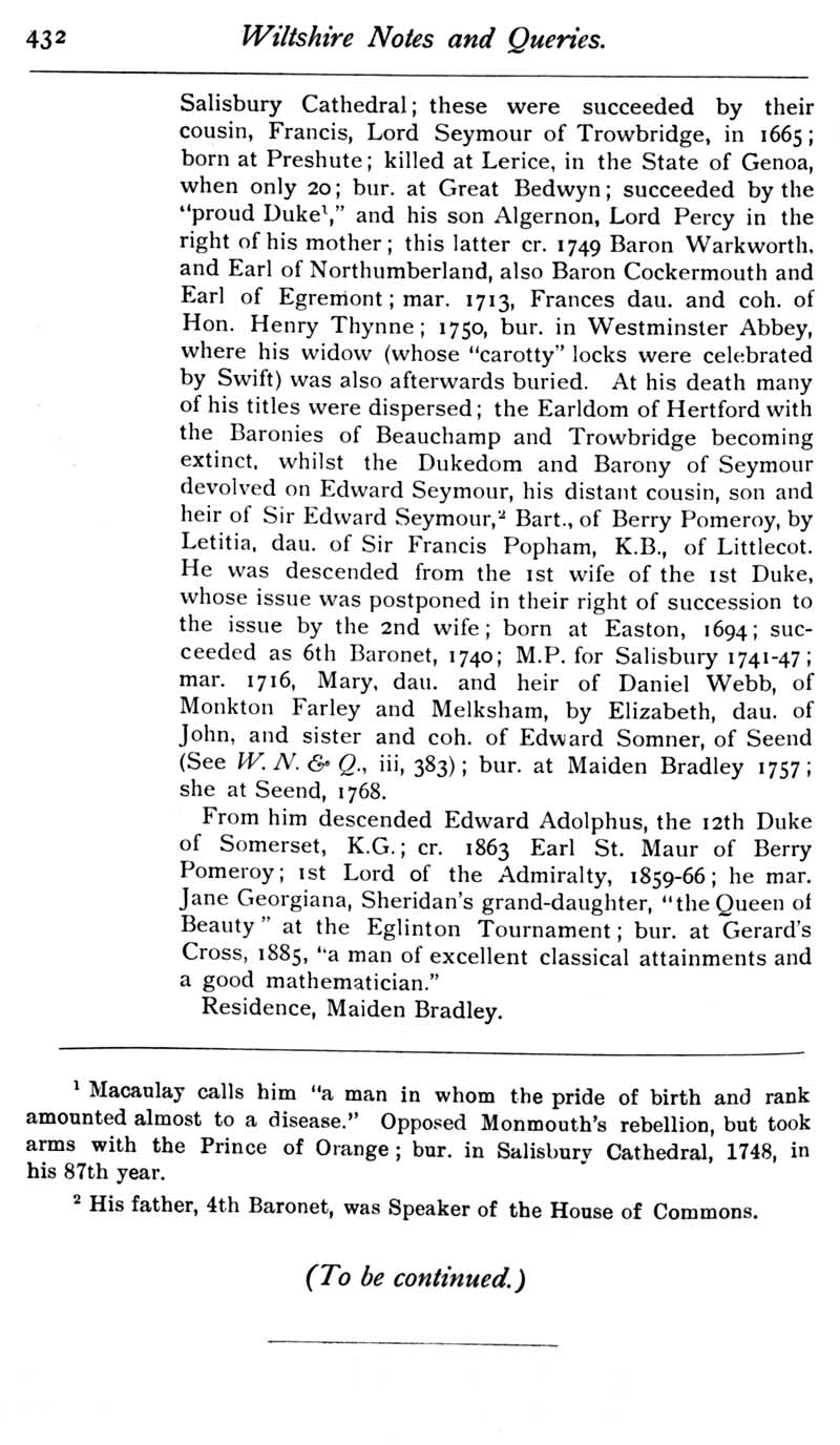 Chapter 10 Isaac Walton; Records of Wiltshire Parishes; Feet of Fines for Wiltshire; Quakerism in Wiltshire; Corr of Aldbourne; De Chyrebury of Seend; Houlton-Selfe; The Form 'Sarum'; John Noyes of Calne; Queries; Replies; Notes on Books
