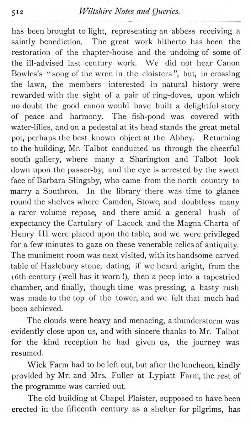 Page 33 Wiltshire Archaeological Society excursion, including visit to Lacock Abbey.