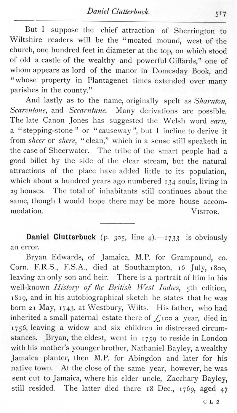 Page 38 Sherrington. Query about families of Clutterbuck, Edwards and Bayley.