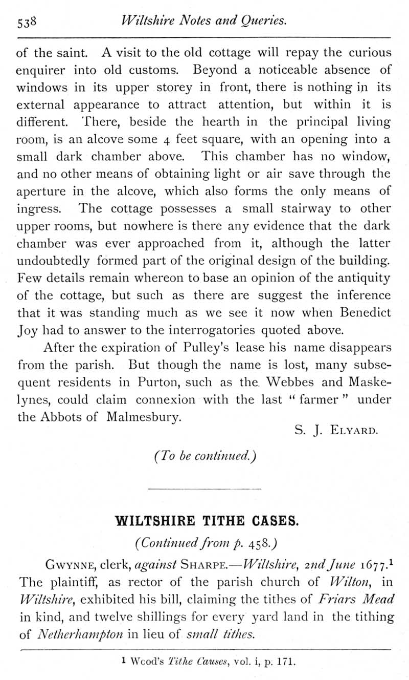 Page 9 Annals of Purton. Wiltshire tithe cases, including reference to Netherhampton.