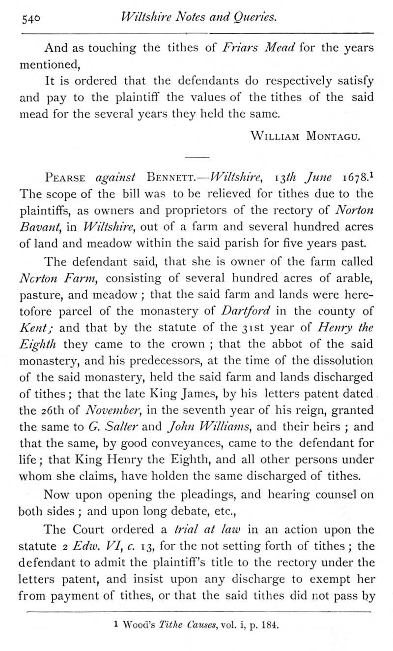 Page 11 Wiltshire tithe cases, including reference to Netherhampton and Norton Bavant.