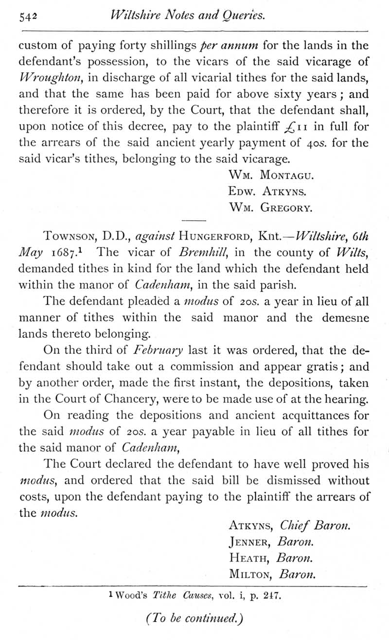 Page 13 Wiltshire tithe cases, including reference to Wroughton and Bremhill.