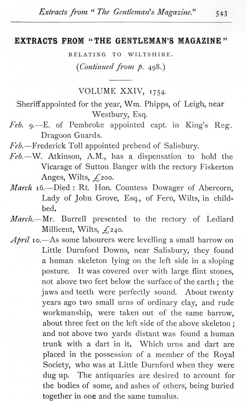 Page 14 Wiltshire extracts from The Gentleman's Magazine for 1754.